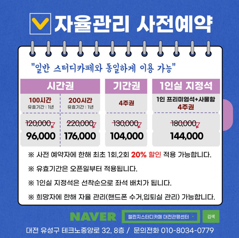 챌린지 관리형 스터디카페 대전관평센터 사전 예약 특가 및 오픈 축하 댓글 달고 경품 받기 이벤트
